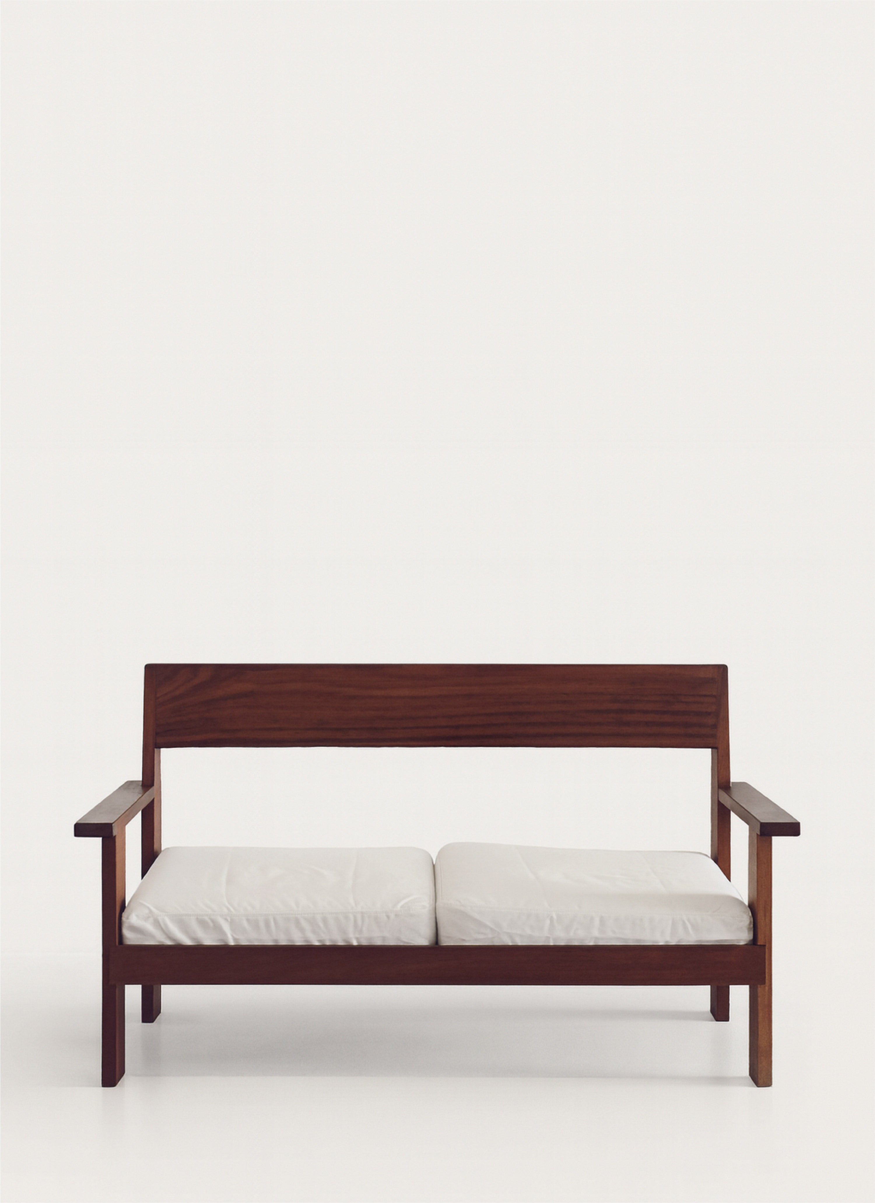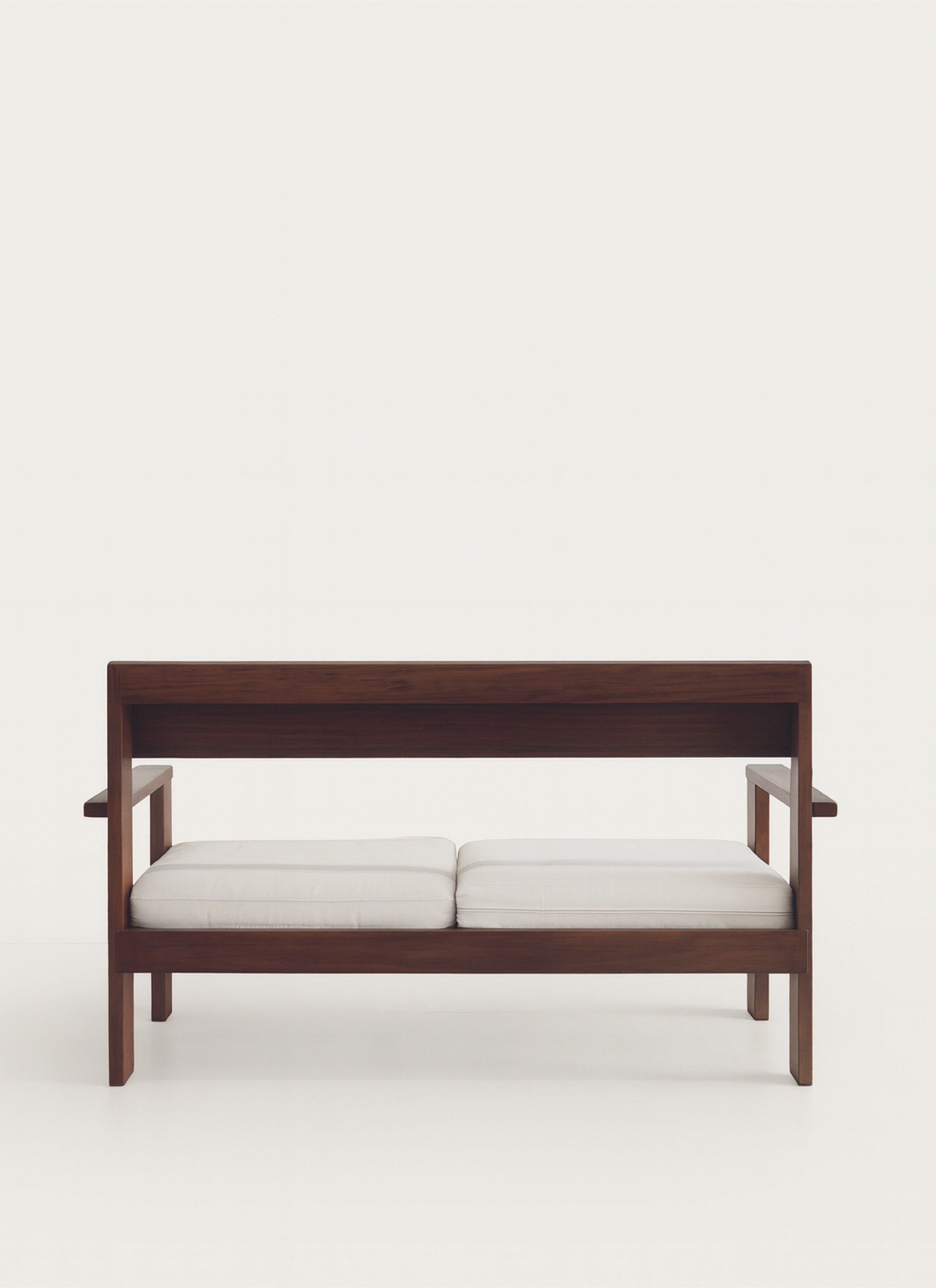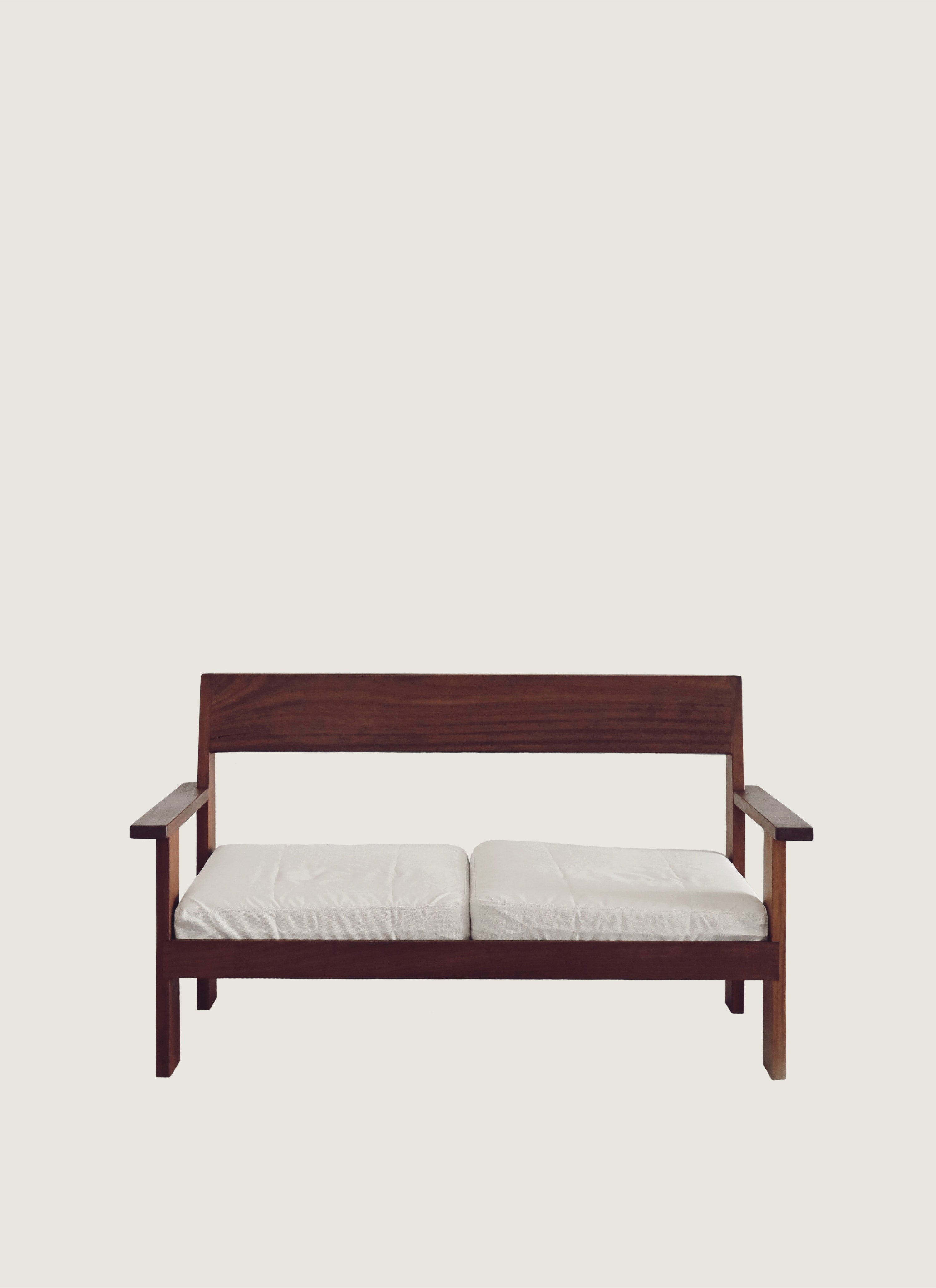 The Alba Sofa carries the same architectural clarity and balance as the lounge chair, expressed in a wider, more expansive form. Designed for outdoor use, it features a solid wood frame with a straightforward silhouette and generous seating. Its minimal design allows it to integrate seamlessly into a variety of spaces.