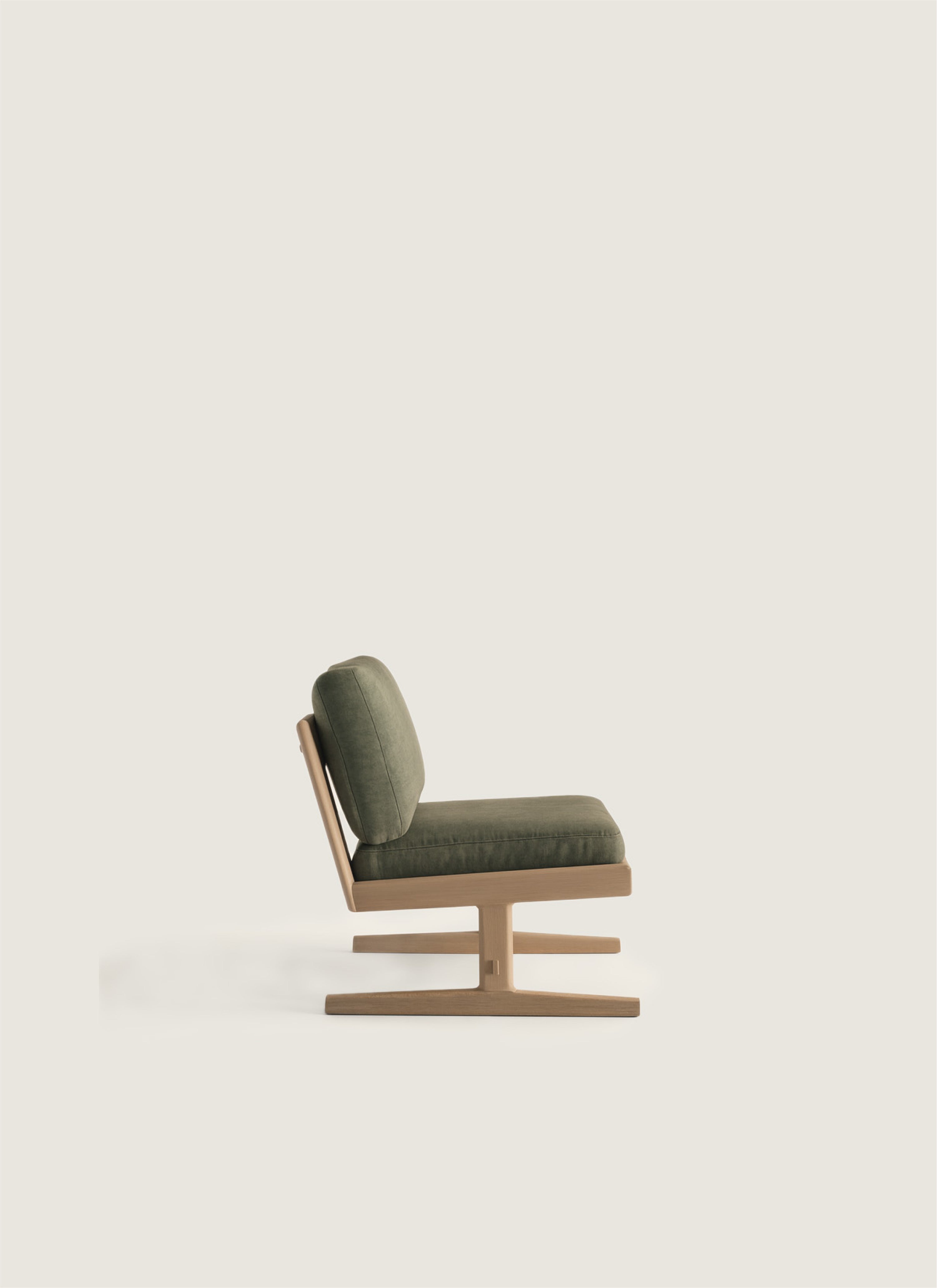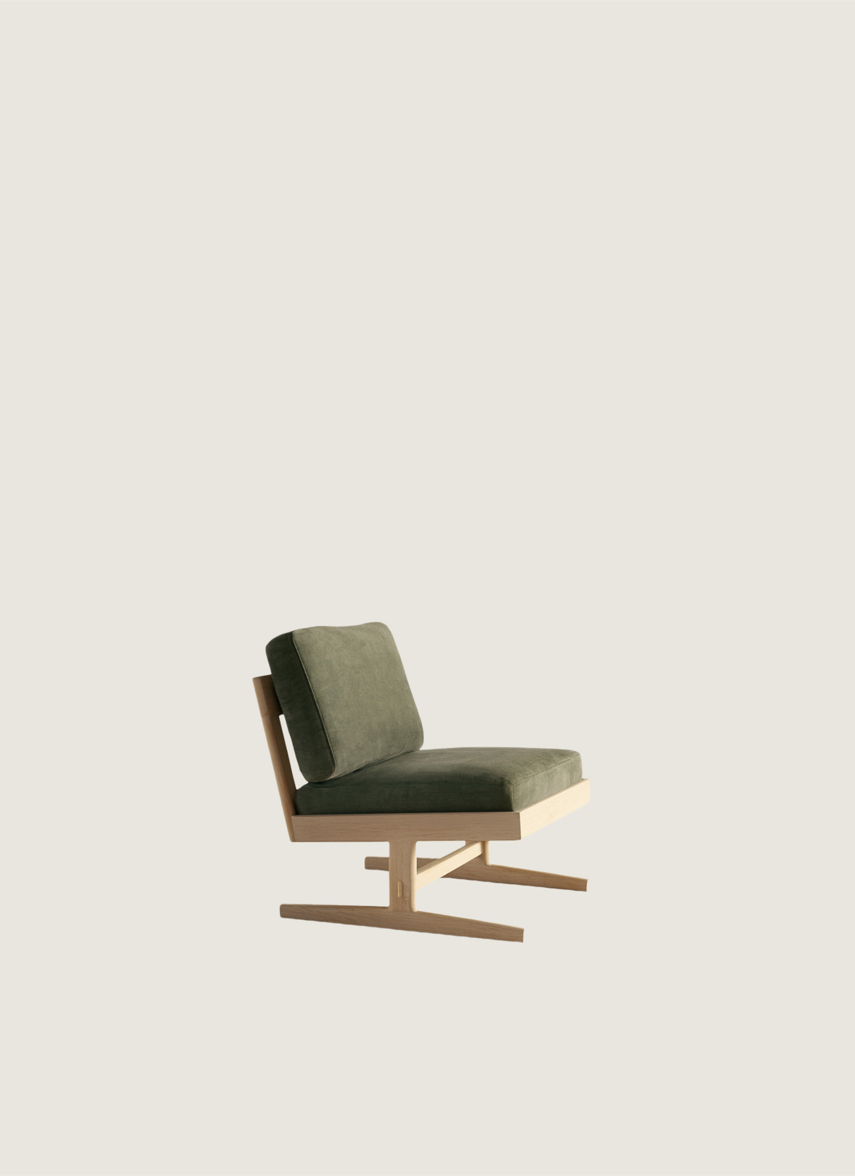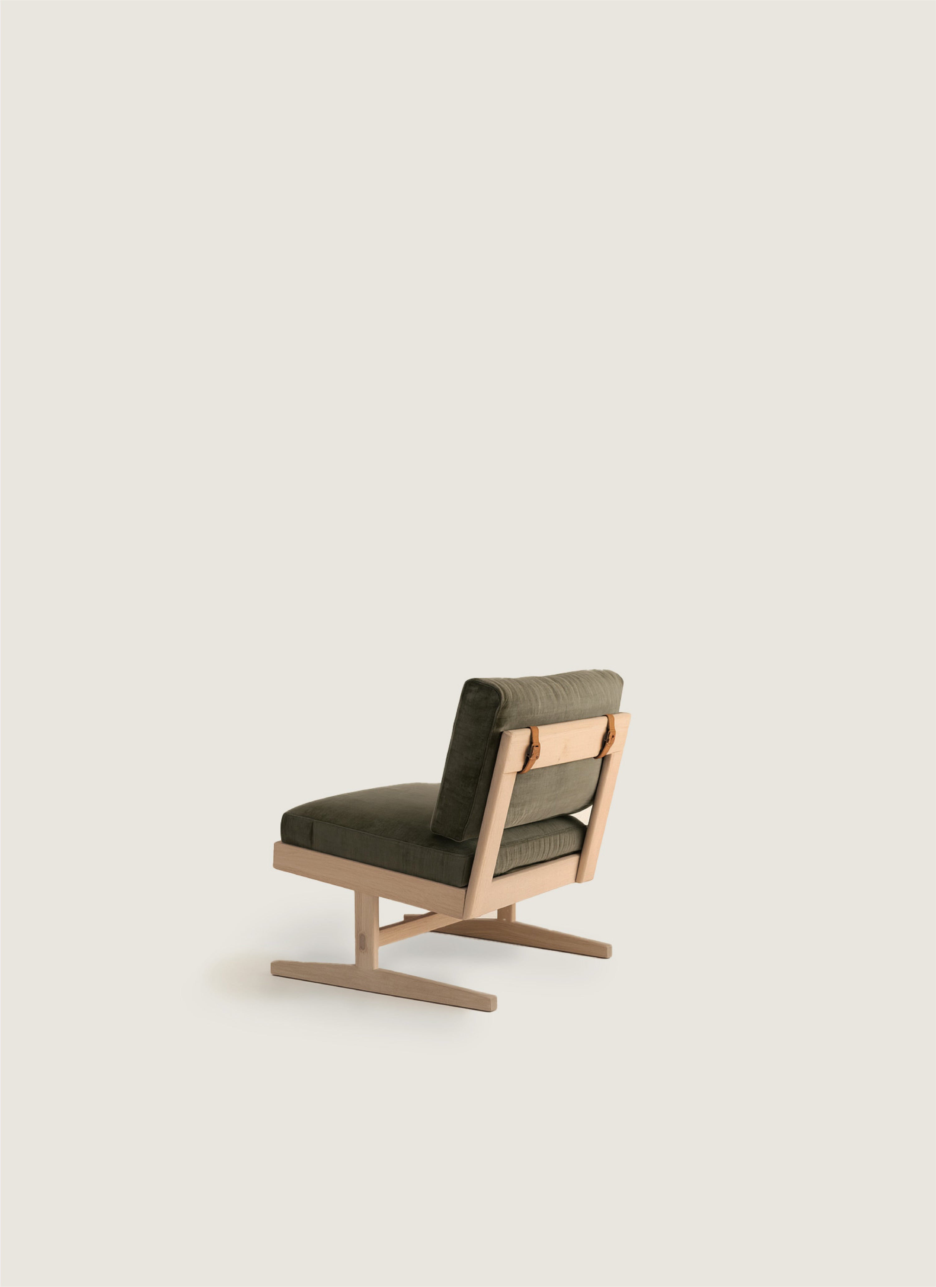 The Bernardo Lounge Chair is wide, low, and relaxed. Its generous proportions and angled back deliver comfort, while subtle leather details at the back add refinement. Designed for both private living spaces and hospitality lounges, the chair was also featured at Lisbon Design Week, underscoring its relevance in contemporary design.